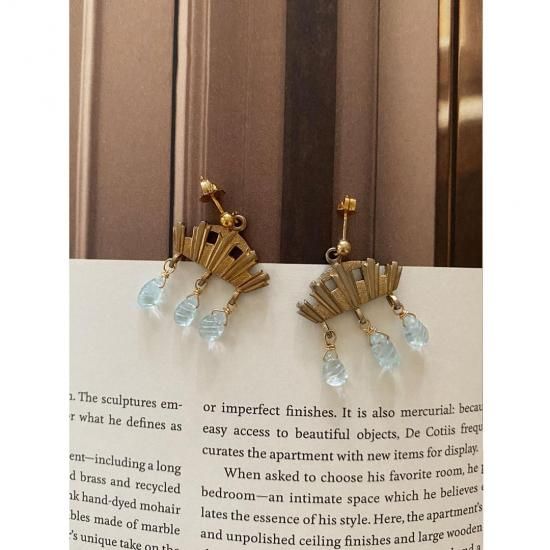 good flow|アクアマリンとゴールドモチーフ イヤリング変更可